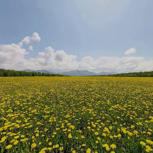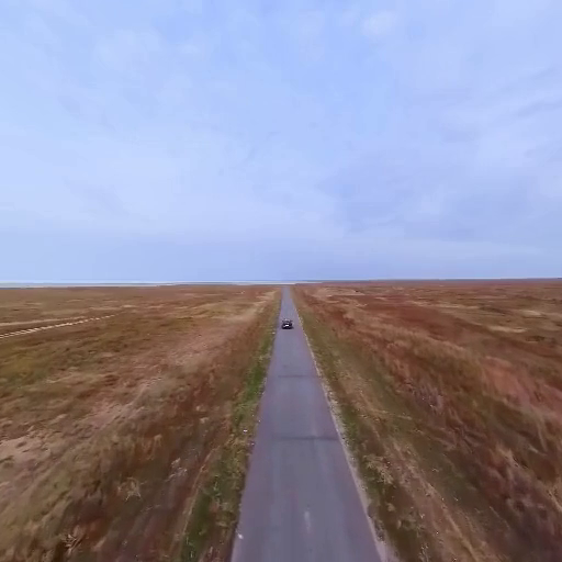 Prompt: A view of a long, straight road stretching through a vast, open field with sparse vegetation.