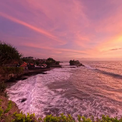 Prompt: A view of the multi-tiered pagoda surrounded by lush greenery, with a serene body of water in the foreground and a picturesque sunset in the background.