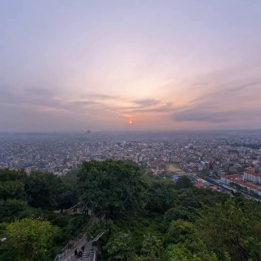 Prompt: A view of the majestic stupa adorned with prayer flags, surrounded by smaller structures and bustling with devotees.
